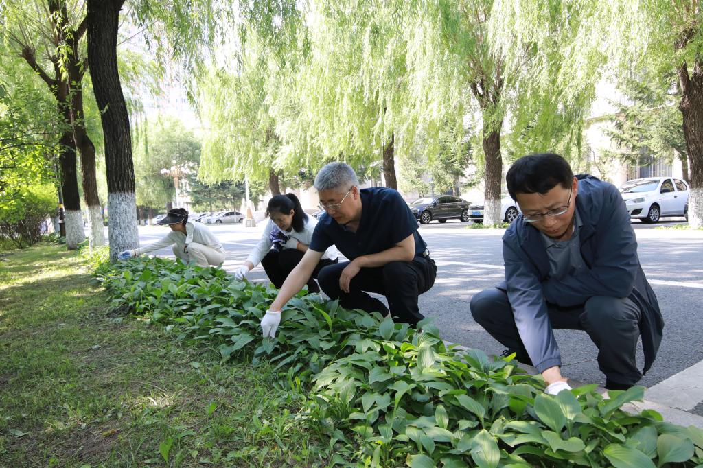 午间阳光和煦,照耀在省委党校宽敞的校园内,大家身着轻便服装,由后勤部门为大家分发手套等劳动工具,并划分好作业区。大家一一准备好后,便以饱满的热情投入到清除杂草的行动中。众人分成多个小组,分别清理不同区域的杂草,彼此合作,井然有序,汗水与笑声交织,从办公楼两侧的绿化带到教学楼周围的小花园,对校园进行细致的清理,大家还交流起了园艺技巧,分享植物养护经验,不仅提升了工作效率,也加深了同事间的友谊,校园内呈现出繁忙而和谐的劳动景象。
