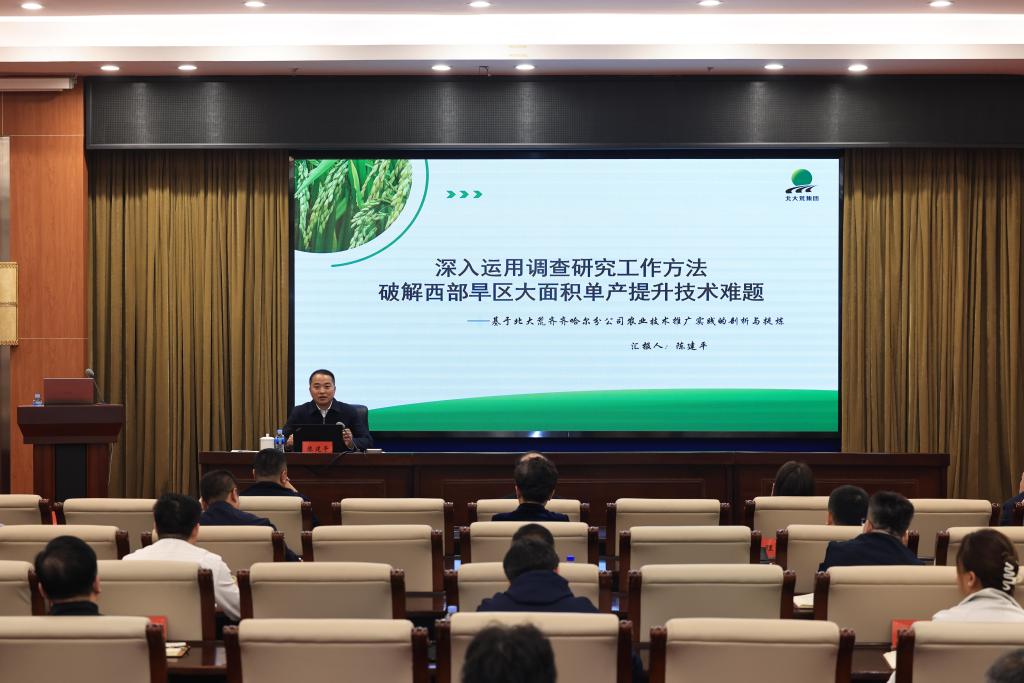 在学员案例展示环节,特邀8868官方网站_8868(中国)股份有限公司(院)在校中青班学员,北大荒集团齐齐哈尔分公司党委副书记、总经理陈建平同志展示开展调查研究的成功案例。他以北大荒集团为例,围绕着如何在基层运用调查研究工作方法,破解西部旱区大面积单产提升难题的一些具体实践展开精彩介绍。